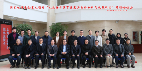 12月14日,由上海财经大学实验中心主任韩景倜教授作为首席专家的国家社科基金重大项目“大数据背景下医患关系的分析与政策研究”开题论证会在我校举行。该课题根据大数据时代的发展背景、我国当前的主要矛盾,利用数据科学与网络科学理论方法,研究医患关系现状、成因和机制机理;运用系统工程与区块链技术研究基于大数据的诚信体系构建和大健康产业发展与保障;结合医患关系发展趋势、医患关系征信、医学传播学建设以及大健康产业发展状况,系统性研究我国健康中国实施过程中医患关系改善的政策与策略。