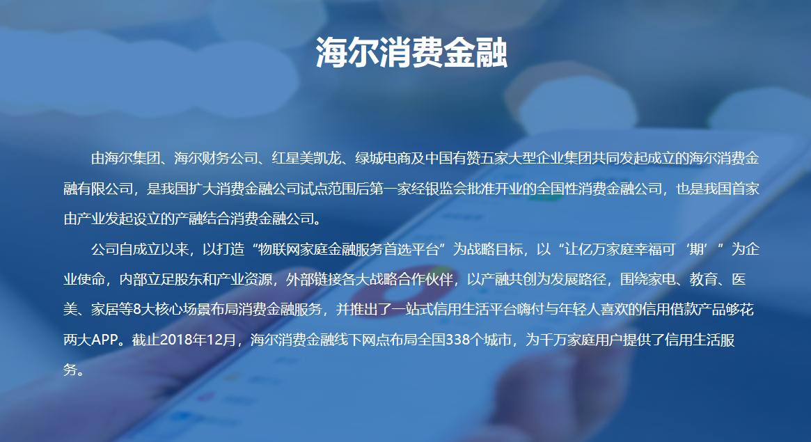 上海财经大学金融科技研究院同海尔消费金融有限公司达成初步合作协议,就其关心的基于金融大数据的海尔消费金融提供咨询及指导服务,内容包含对大数据视野下消费金融发展的现状、趋势及前景的分析,建模和算法的实现等具有针对性和有效性的咨询。