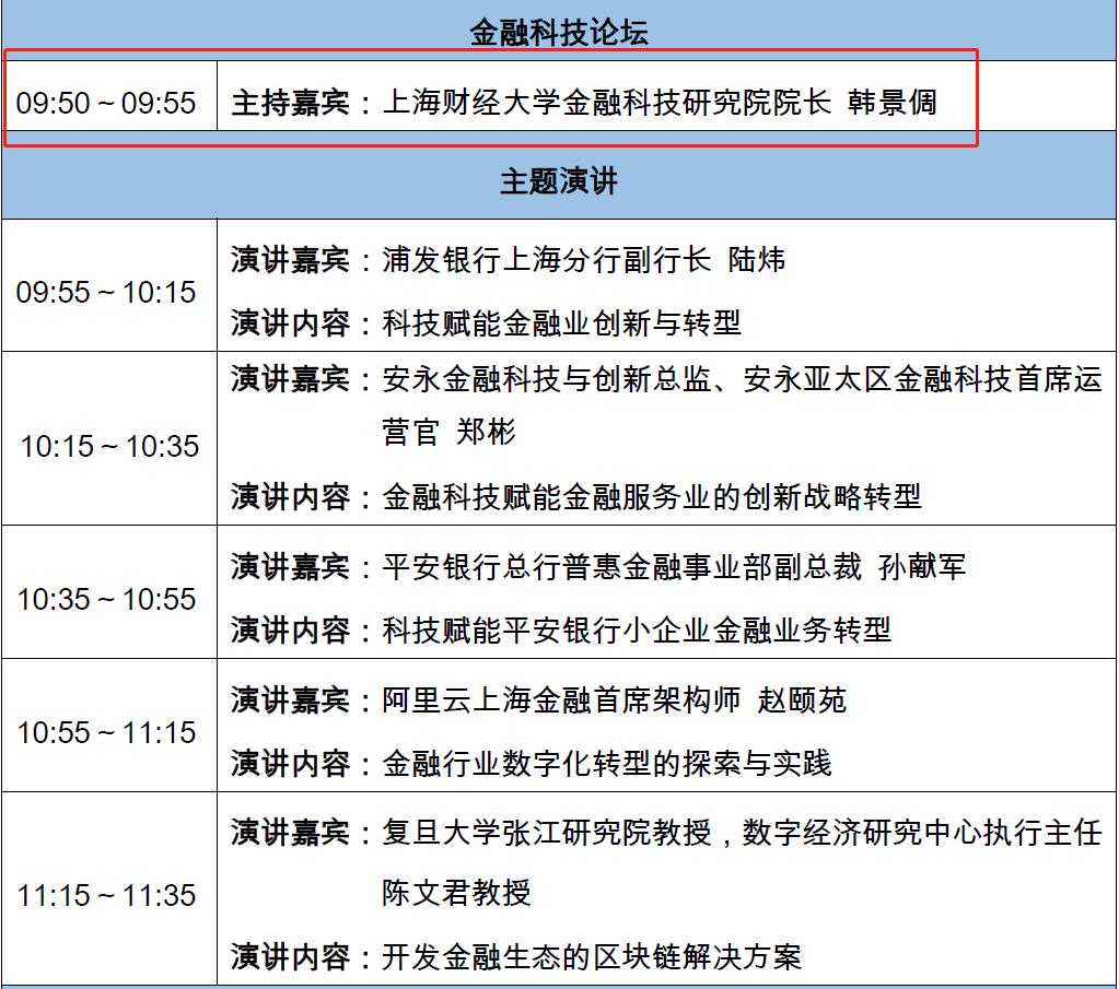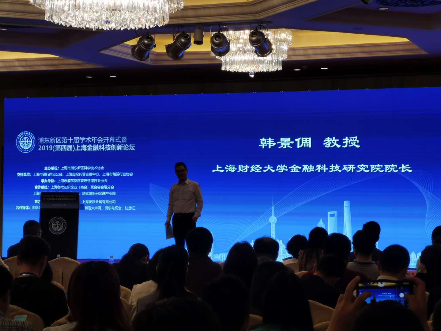 上海财经大学金融科技研究院参与浦东新区第十届学术年会开幕式暨2019上海金融科技创新论坛。此次会议于2019年5月17日举行由浦东新区管理咨询行业协会承办,并得到上海市银行同业公会、上海股权托管交易中心、上海市租赁行业协会以及全球领先的咨询服务机构安永的支持。来自政府机构、行业协会、商会、各类金融机构、高新科技企业的代表以及媒体记者等400多人出席。浦东新区学术年会是浦东科技界一年一度的顶级学术盛会,是为了繁荣发展浦东科技事业,为新区科技社团和广大科技工作者提供的一个展示成果、相互交流的舞台。教学团队负责人韩景倜教授主持了“金融科技分论坛”。
