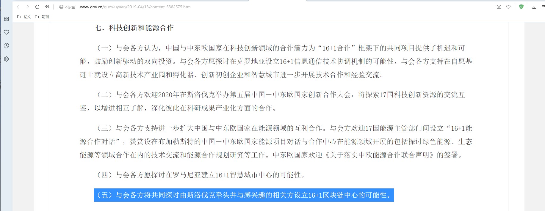 “中国—中东欧区块链卓越中心”是由斯洛伐克政府牵头成立,经过斯洛伐克总理批文的国际性组织,是中国-中东欧国家(CEEC)合作(也称“17+ 1”倡议)的重要组成部分。2019年4月8日到4月12日国务院总理李克强赴布鲁塞尔出席第二十一次中国—欧盟领导人会晤,并签署了“中国—中东欧国家合作杜布罗夫尼克纲要”,纲要中指出与会各方将在科技创新和能源方面合力合作,且共同探讨由斯洛伐克牵头并与感兴趣的相关方设立16+1区块链中心的可能性。该卓越中心的愿景是称为专注于加速区块链即分布式账本技术(DLT)基础研究即应用落地的全球卓越中心,其使命是为区块链生态系统蓬勃发展即推动国家一带一路倡议而主力新技术的研发落地,研究的领域包括:区块链、密码学、及网络安全技术;工业4.0级物联网中的区块链应用;通证经济、商业应用模型;区块链相关金融、合规、法律及政治影响等。2019年4月12日,中国—中东欧国家合作机制在克罗地亚迎来了新成员希腊的加入,从“16+1”扩容到“17+1”。
