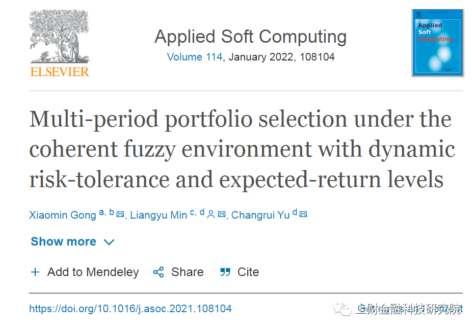 近日,上海金融智能工程技术研究中心弓晓敏博士、于长锐教授发表JCR一区论文一篇,论文主要研究在一致模糊环境下具有动态风险容忍和期望收益水平的多周期投资组合。